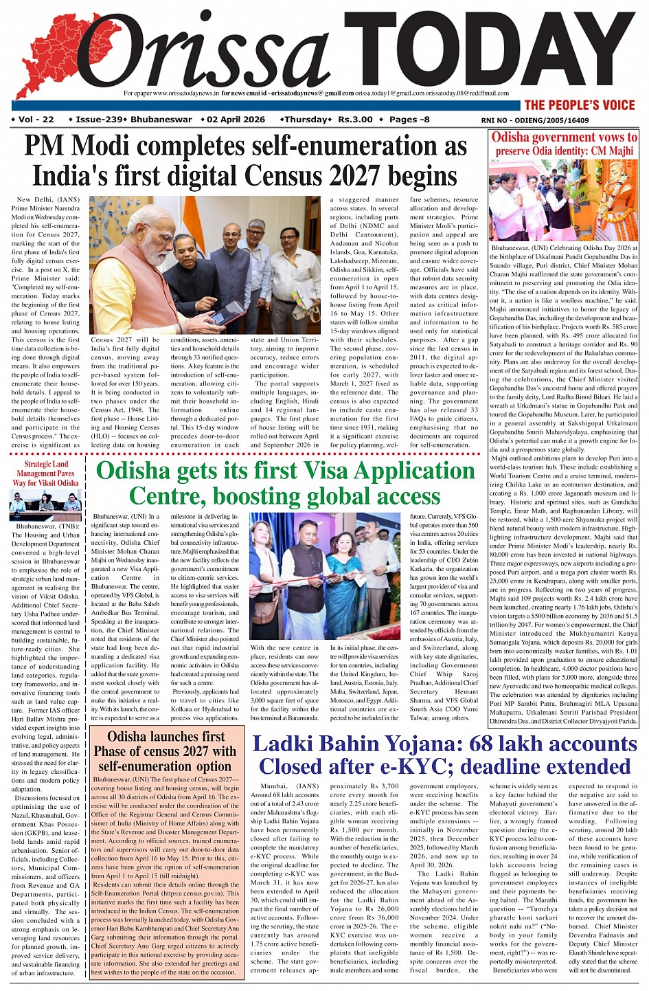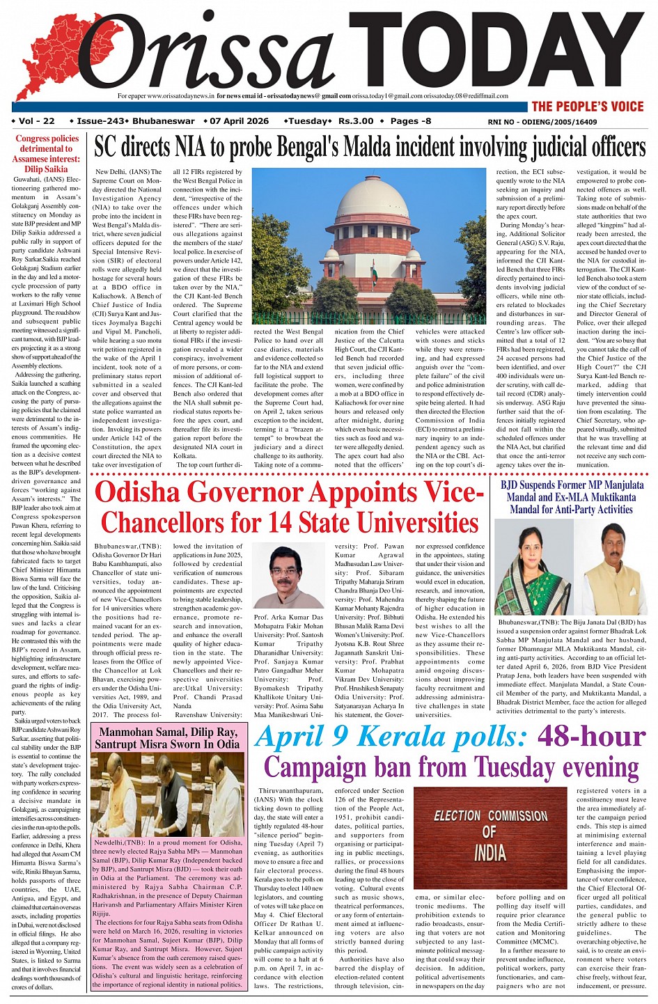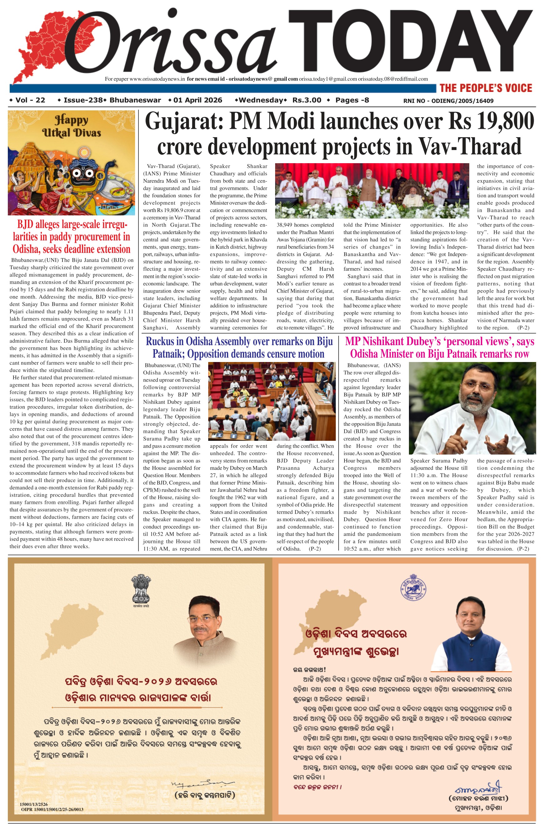 Orissa Today Daily English Newspaper