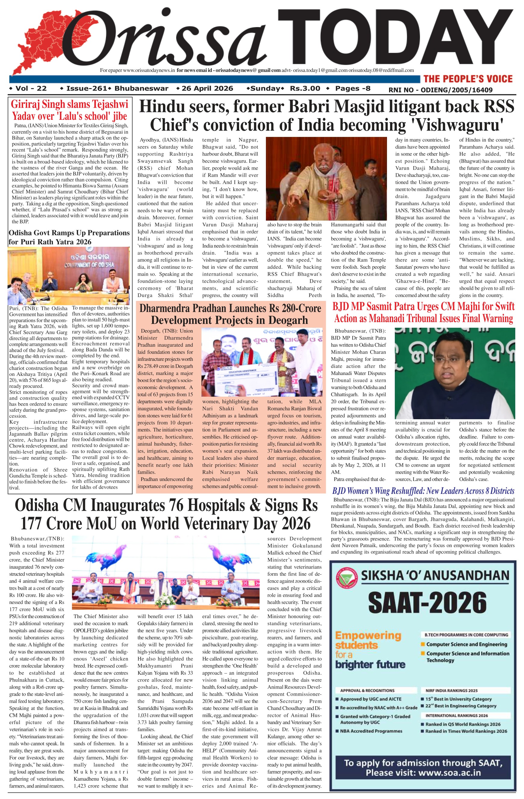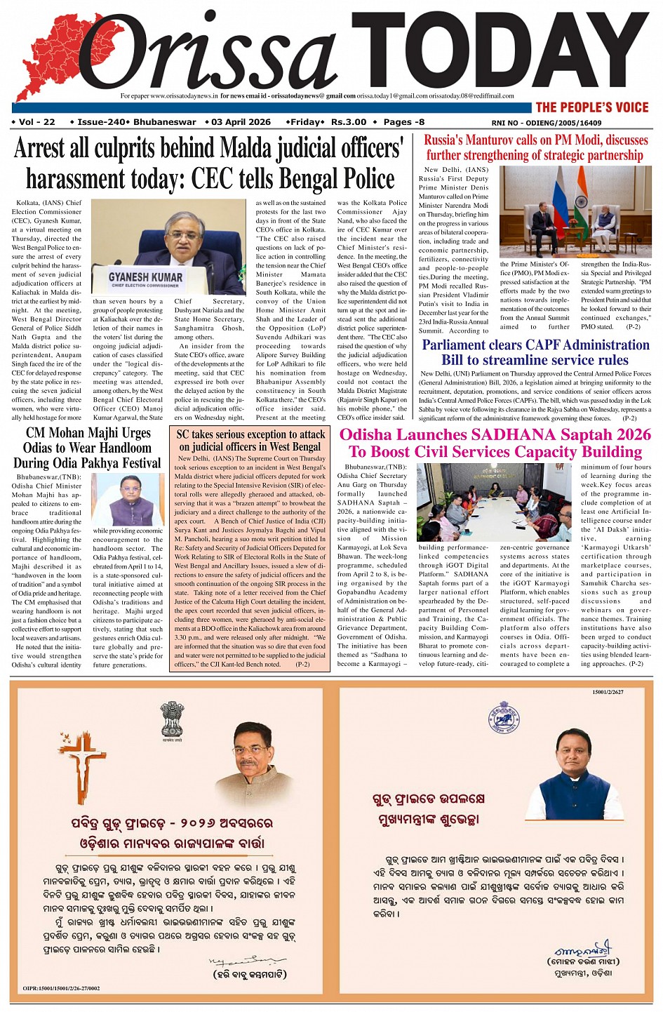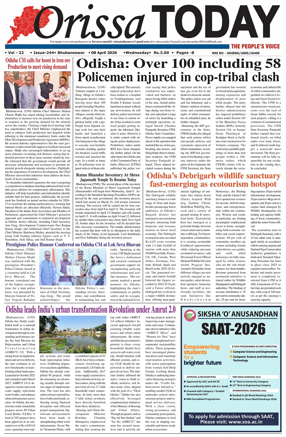 Orissa Today Daily English Newspaper