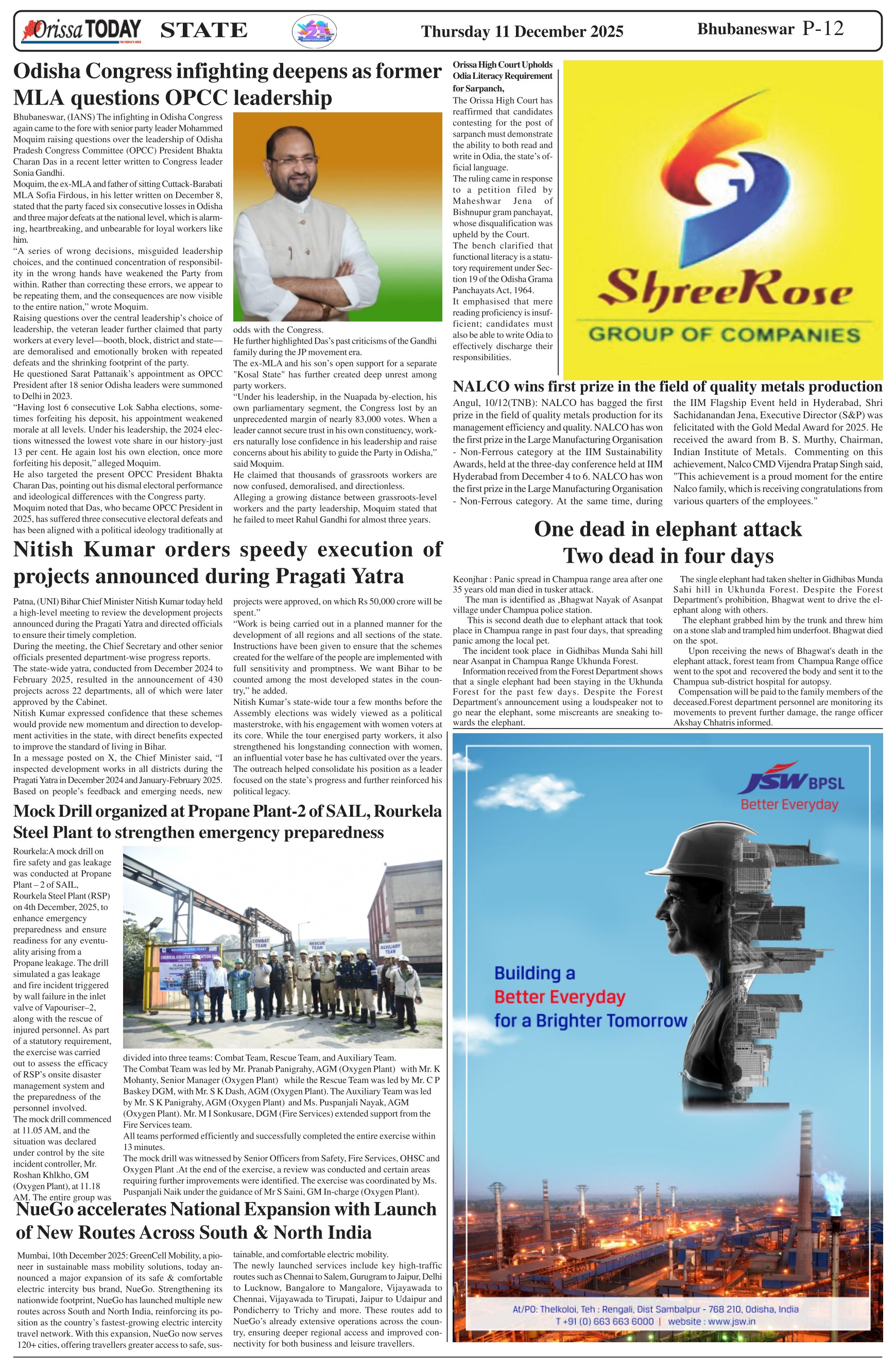 Orissa Today Daily English Newspaper Page: 12